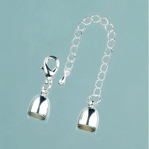 Afsluttende del. Skjuler knuder, sølvfarvet, med kæde.