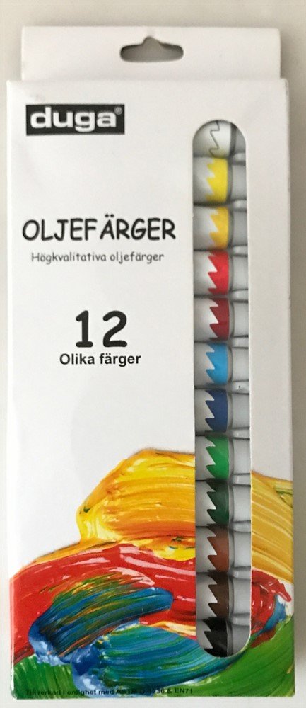 Sæt med 12 oliemalinger i forskellige farver, 12 ml pr. farve
