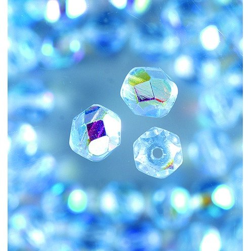 Facetterede Glasperler - Lyseblå, Runde, Glitrende