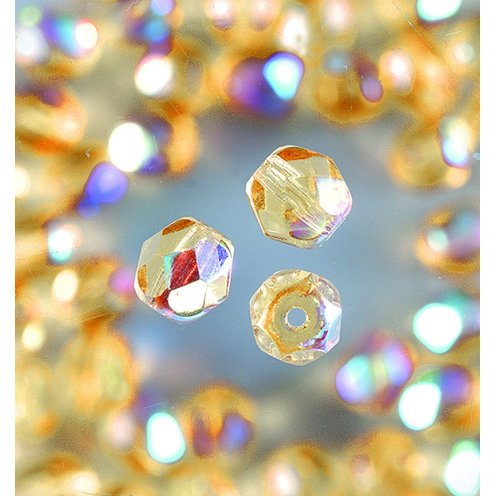 Glasperler Facetterede - Lys Topas - Runde, Skinnende