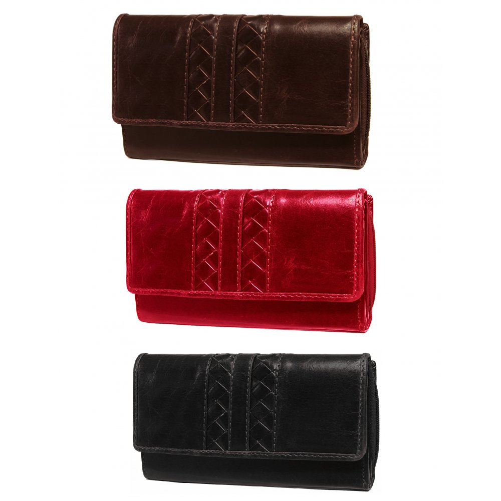 Damepung i okselæder med quiltet mønster på forsiden. Indersiden består af ni kortpladser, en lomme med vindue,