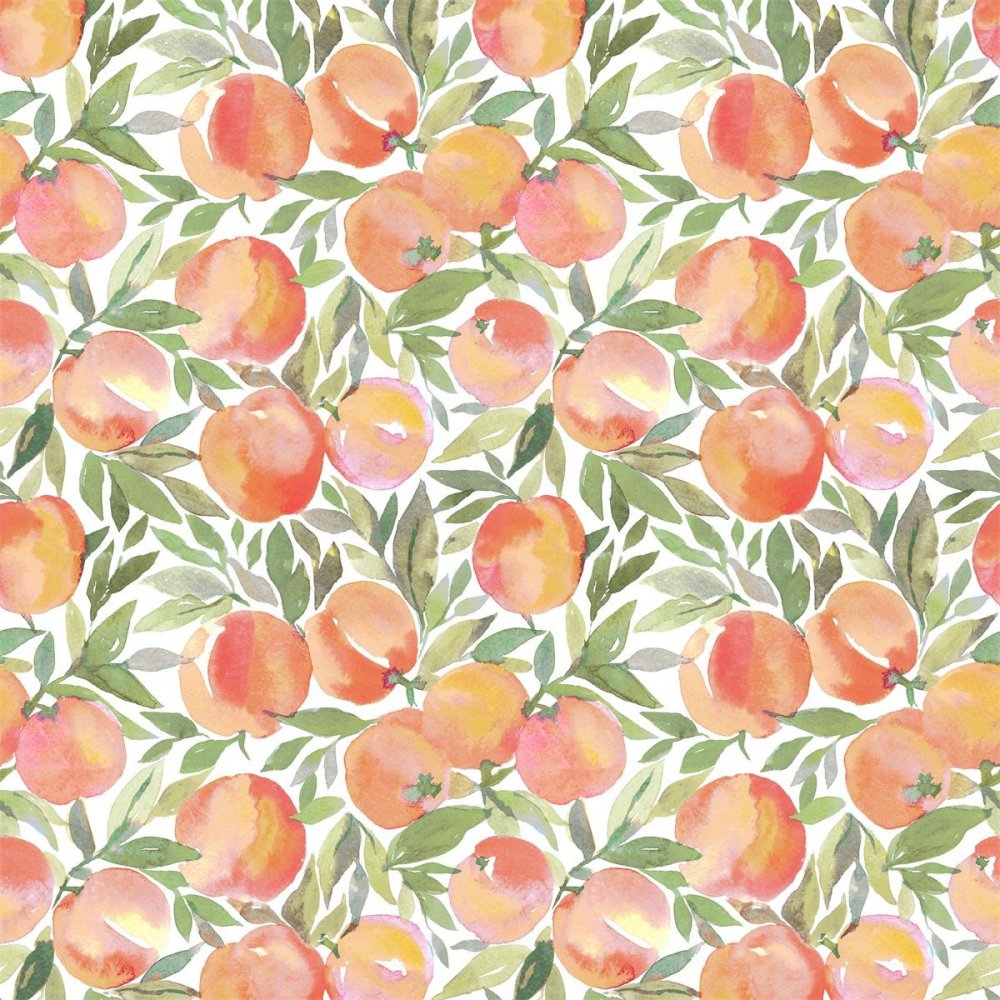 En dejlig CTC-belagt dug i metermål fyldt med ferskner! Produktet består af 63% genbrugsmateriale.