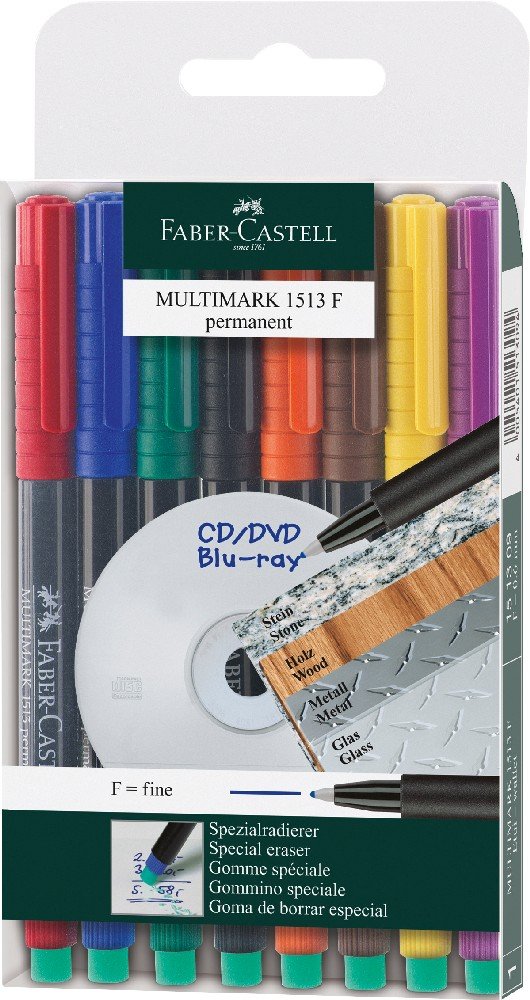 Den perfekte samling af permanente mærkepenne. Otte forskellige farver samt vandfast og vejrbestandigt blæk. Flot og pæn spids og et specielt viskelæder på toppen, som du kan bruge til at slette dine markeringer.