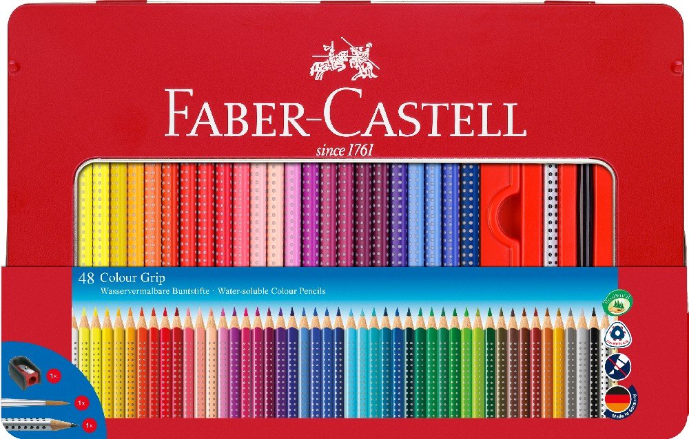 Dette sæt indeholder udover 48 blyanter, 1 pensel, en grafitpen og en blyantspidser.