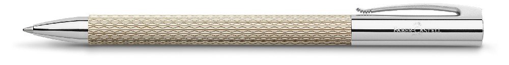 Denne flotte pen har en smuk guillocheret gravering i sandfarve. Front og top er konstrueret af poleret metal, hvilket giver en flot kontrast. Du bruger pennen med en vridemekanisme, og kan fastgøre den, hvor det føles passende med den fjederbelastede klemme. Den er udstyret med refill, der kan udskiftes ved behov og leveres i en flot gaveæske og etui.