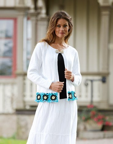 Strikkeopskrift - Cardigan og top med hæklede firkanter