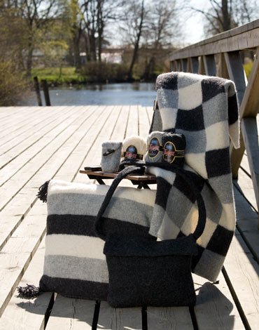 Strikkeopskrift - filtet tæppe, pude, taske og mobiltelefontaske