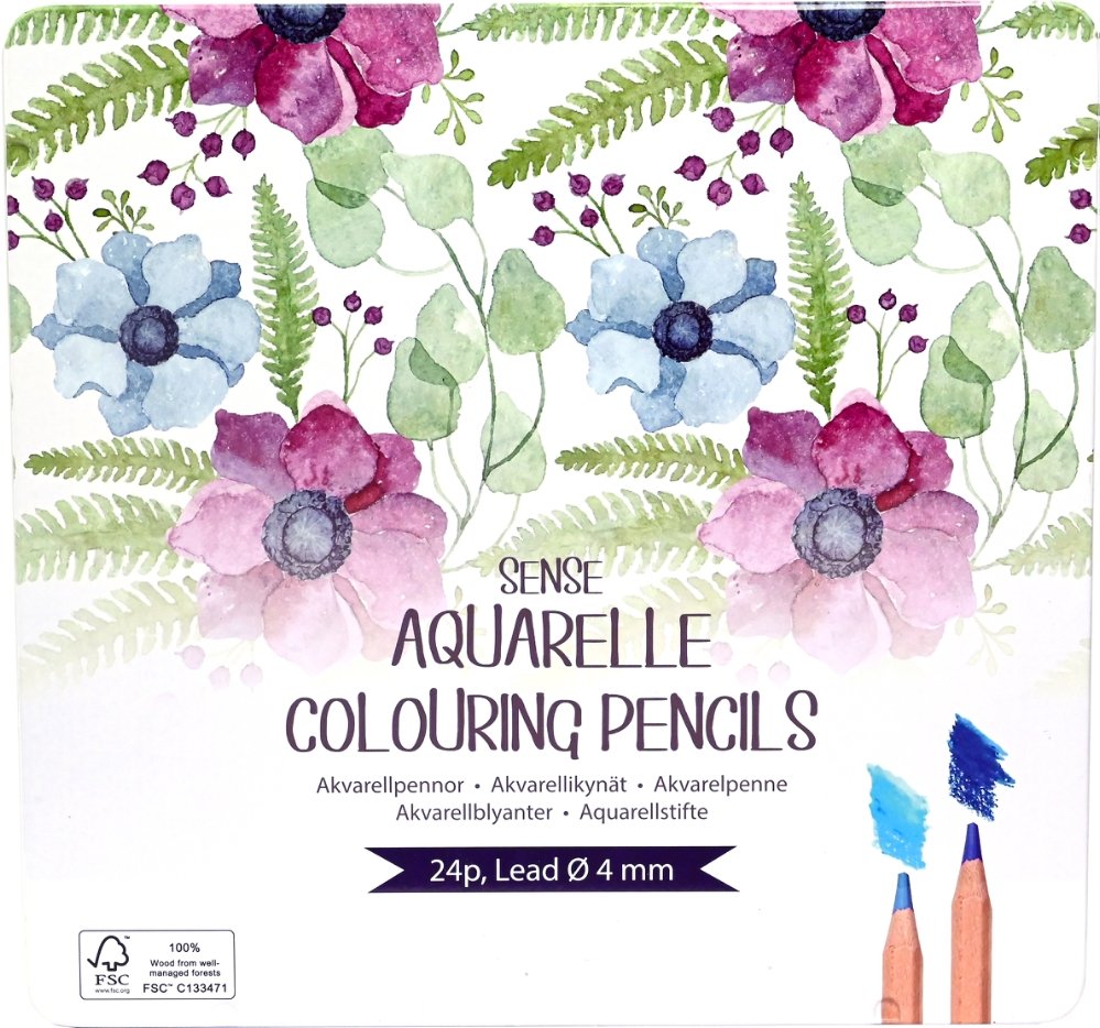 Akvarelblyanter i metalplader. Stærke og klare farver. Pen med blød følelse, der efterlader masser af farve.