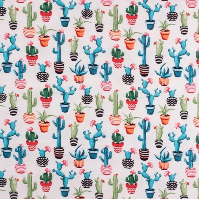 Mønstret Jersey 160 cm - Kactus Hvid