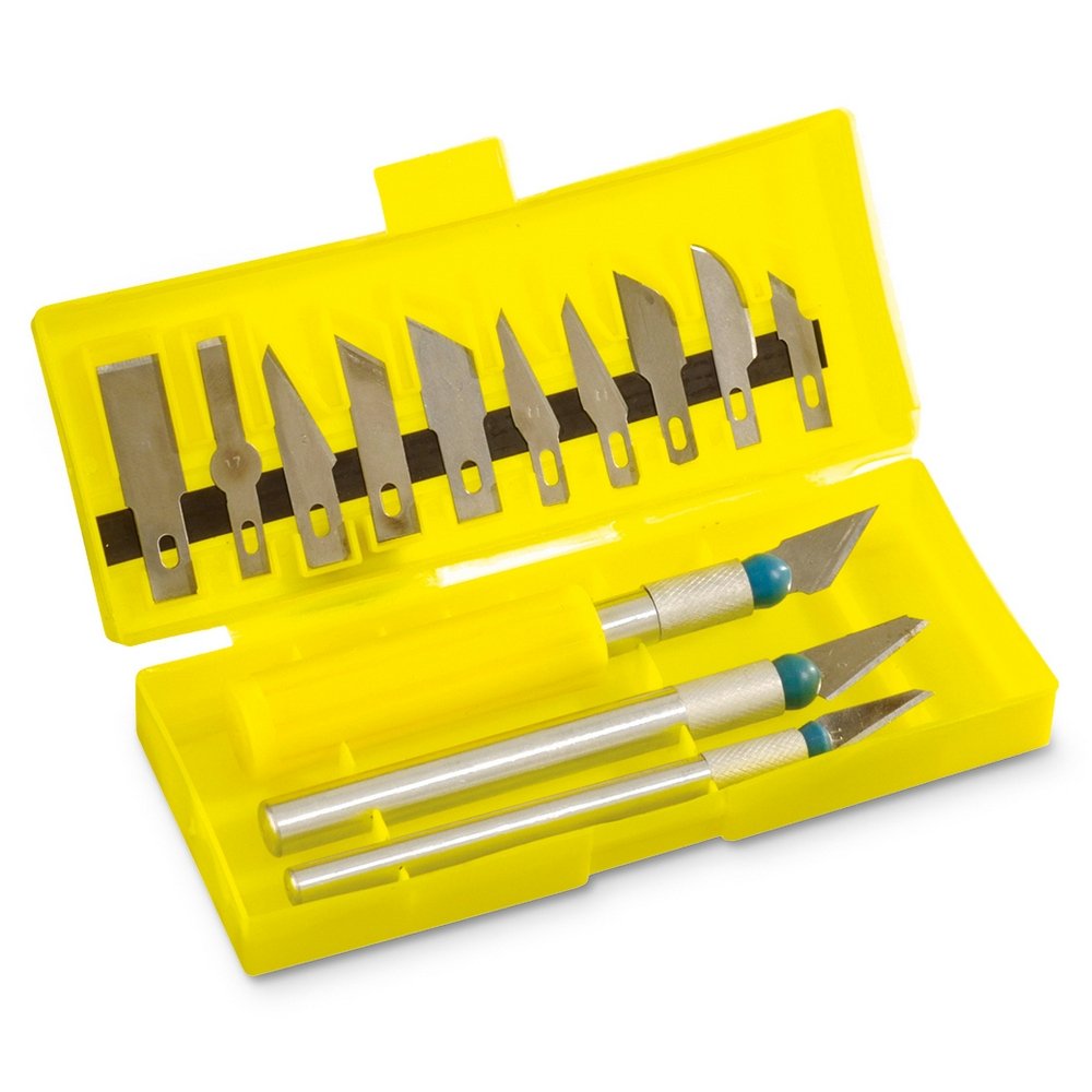 Knivsæt med 13 blade og 3 håndtag i kuffert.