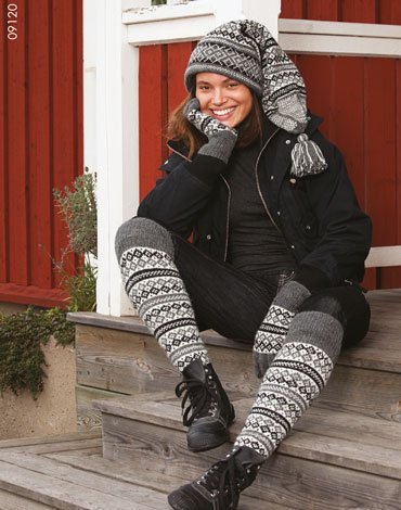 Strikkeopskrift - Mønsterstrikket hue, sokker og vanter