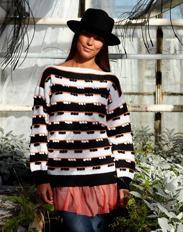 Strikkeopskrift - Mønstret dametrøje (med mini pompon)