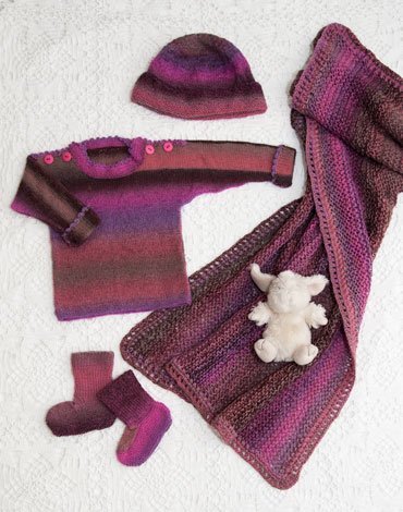 Strikkeopskrift - Strikket sweater, hue, strømper og tæppe