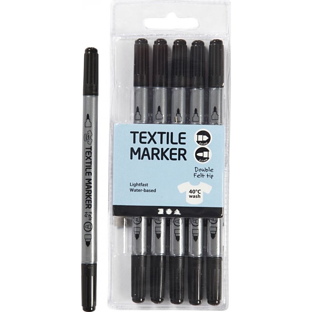 Permanente tekstiltuscher med dobbelt spids til dekoration af nye og gamle tekstiler. Ryst markøren godt inden brug og læg et stykke plastik eller pap indeni, f.eks. t-shirts og muleposer, så farven ikke trænger ind og pletter på den anden side. Når malingen er tørret fikserer du den ved at lægge et stykke bagepapir over kunstværket og derefter stryge det oppefra og nedefra gennem bagepapiret. Efter strygning forbliver farverne smukke, selv når de vaskes ved 40C. Bemærk venligst, at tekstilmarkøren er perfekt til lette bomuldstekstiler mm. Tekstiltuscher er perfekte til alle kreative sjæle. Du kan bruge dem til at bringe alle slags stoffer til live med unikke mønstre og søde tegninger og løbe løbsk med farver! Tuscherne er derfor med garanti et hit hos folk i alle aldre, lige fra kunstneriske voksne til kreative børn. Vil du kunne lave tynde streger til at tegne og skrive eller tykke streger til farvelægning Med vores tekstiltuscher fra Colortime har du begge muligheder. Ønsker du noget, der er nemt at dekorere tekstiler og stof med, er denne populære tusch et godt valg.